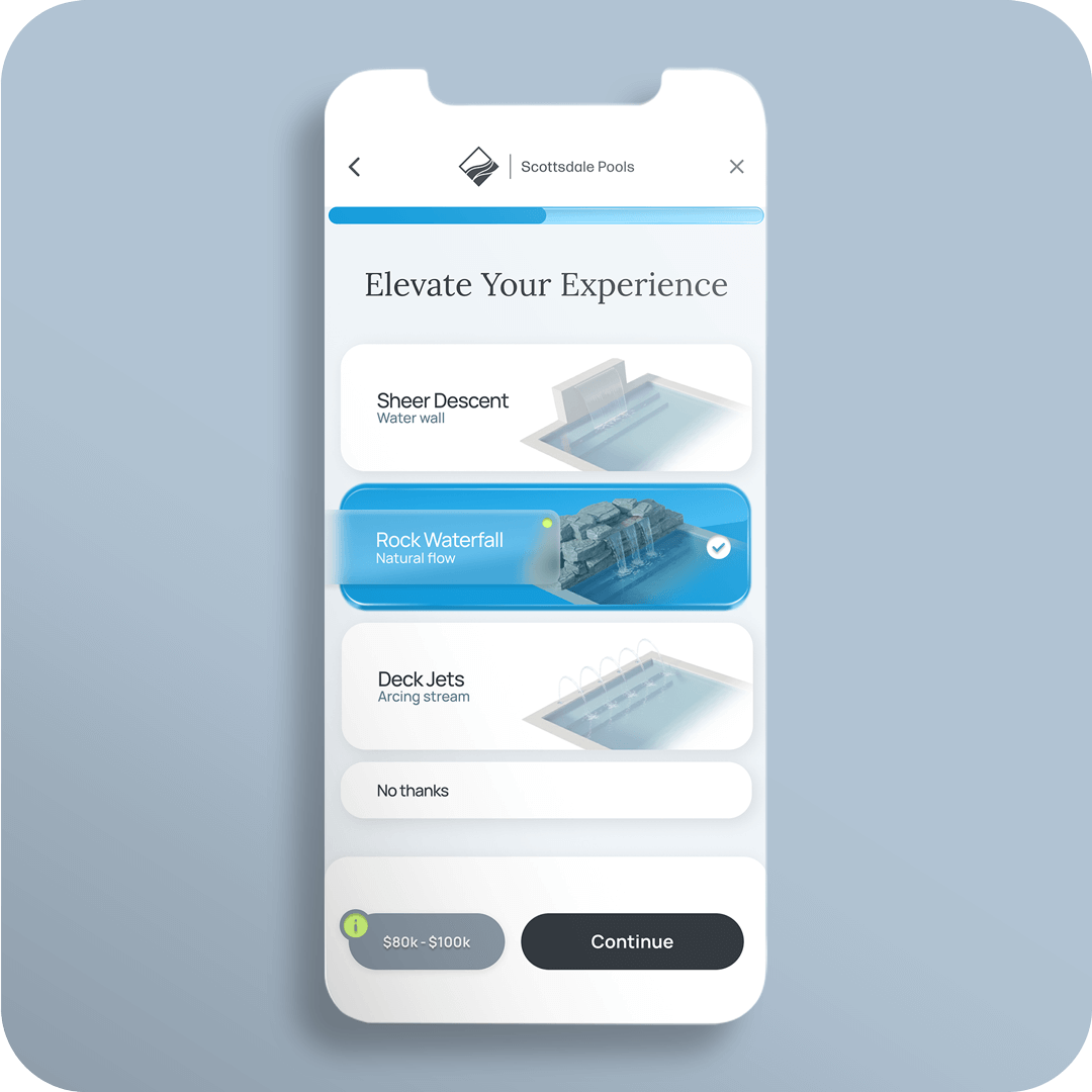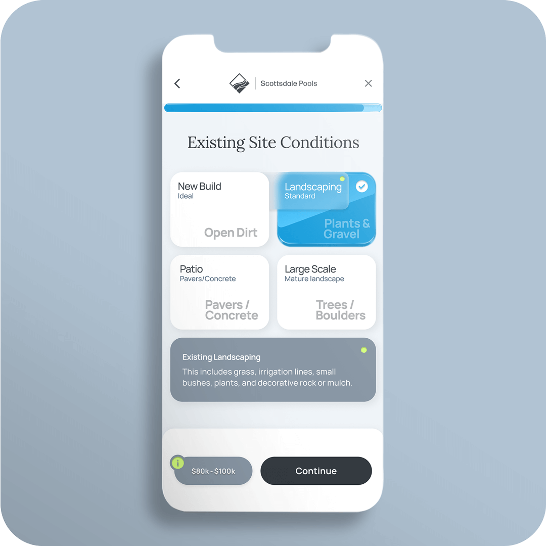 Scottsdale Pools, a high-end custom pool builder in Arizona, faced a dual challenge: their sales team was overwhelmed by unqualified leads, while prospective customers were frustrated by the lack of pricing transparency on the website.